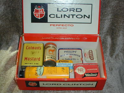 7 Old Advertising Tins in a Cigar Box, All Nice