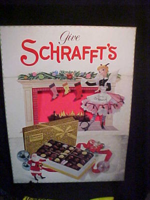 Title (ebay affiliate link): 1959 SCHRAFTS CANDY Die Cut CHRISTMAS FIREPLACE Drug Store DISPLAY SIGN