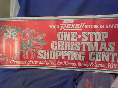 Title (ebay affiliate link): 1960s REXALL Drug Store CHRISTMAS Paper DISPLAY Banner 4' SIGN