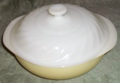 Title (ebay affiliate link): Vintage yellow lidded swirly milk glass top Pyrex Bowl 024 2QT. 31 USA Ovenware