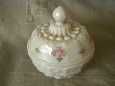 vintage WESTMORELAND milk glass Hand Painted Candy Trinket dish Powder Jar bows