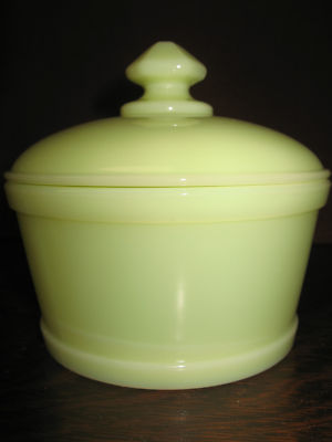 vaseline yellow milk Glass serving domed butter dish / tub uranium covered candy