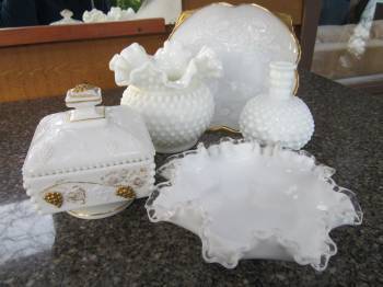 5 pieces of Vintage Fenton Milk Glass excellent condition