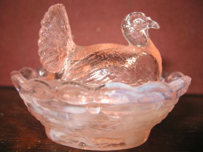 Title (ebay affiliate link): pink and milk slag glass salt celt hen turkey on nest basket dish chicken cellar