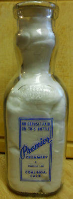 Title (ebay affiliate link): VINTAGE GLASS MILK BOTTLE MODERN TOP SPAS-SAVR PREMIER CREAMERY BLUE LETTERING