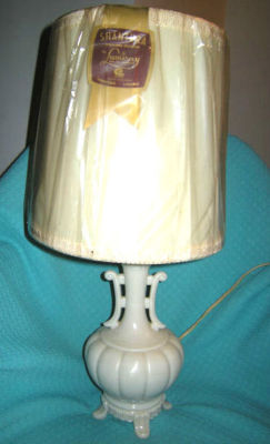 Title (ebay affiliate link): Vintage 21" table lamp, milk white glass with Shantura for Lumiray shade