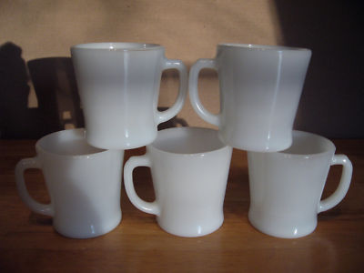 Lot of 5 D-Handle Fire King Mugs / Milk Glass cups