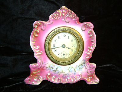 Title (ebay affiliate link): Antique ca. 1900 Gilbert Porcelain Mantel Shelf Wind Up Clock *not working* NR