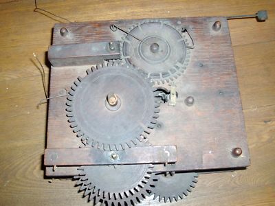 Title (ebay affiliate link): Antique Wooden Clock Works Movement for Repair Parts Restore As IS