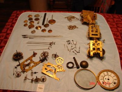 Title (ebay affiliate link): Antique Clock Movements, Pendulums and various spare parts.