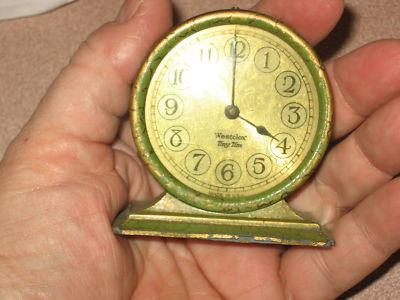 Title (ebay affiliate link): Antique 1940's Westclock Tiny Tim Bedroom Travel Clock Cute & Works