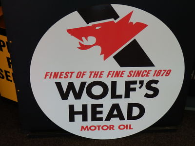 WOLFS HEAD OLD STYLE LARGE 24" ROUND SIGN GAS & OIL NO RESERVE