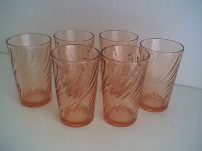 Title (ebay affiliate link): VINTAGE SET OF 6 -- 8OZ JUICE GLASSES PINK SWIRL DESIGN