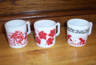 Title (ebay affiliate link): 3 HAZEL ATLAS MILK GLASS CHILDREN'S MUGS DAVY CROCKETT, PRAYER AND LEAVES