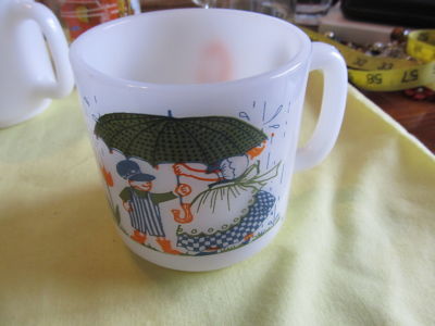 VINTAGE GLASBAKE A FRIEND IS A PRESENT MUG MILK GLASS