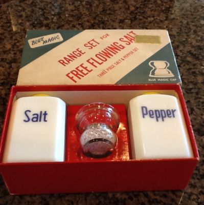 Milk Glass Blue Magic Salt And Pepper Shakers In Box