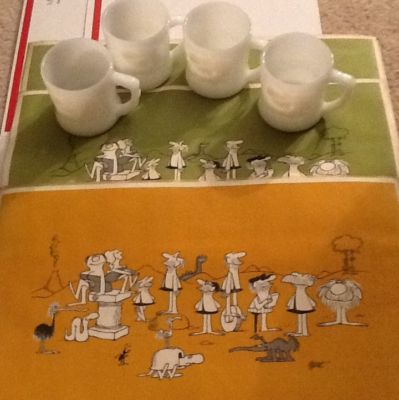Vintage BC Comics Lot Set of 4 Grog Mugs Cups Milk Glass J. Hart And 3 Placemats