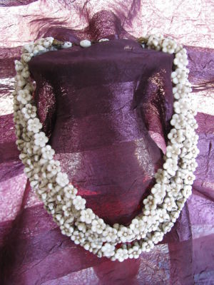 Vintage White Molded Flower Bead Necklace Milk Glass 15"