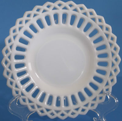 White Milk Glass Reticulated Diamond Edge Plate 5"