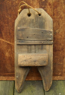 Title (ebay affiliate link): Antique Primitive Old Wood Boot Jack Square Nails