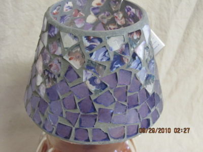 Title (ebay affiliate link): HOMCO/HOME INTERIOR LAVENDER MOSAIC CANDLE SHADE GLASS 5 1/4"X3 7/8" NEW NO BOX