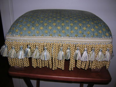 VINTAGE FOOT STOOL SQUARE BLUE AND YELLOW