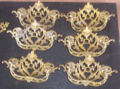 Title (ebay affiliate link): 6 LARGE VICTORIAN BRASS DRAWER PULLS 2 KEYHOLE COVERS
