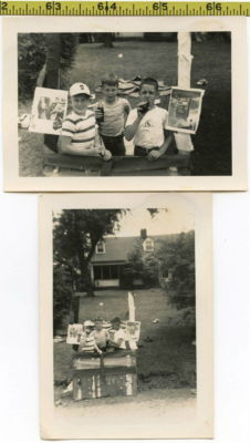 (2) Old 1950's photos / Boys Run Roadside COCA-COLA Bottle Stand w/ Old Coke Ads