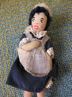 Title (ebay affiliate link): ANTIQUE CLOTH DOLL MAID SERVANT REAL HUMAN HAIR EMBROIDERED FACE NO RESERVE