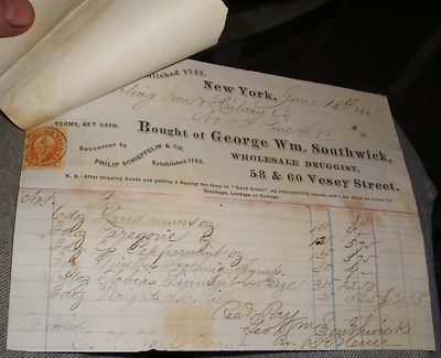 Title (ebay affiliate link): 1866 Invoice: NYC Wholesale Druggist Geo.Southwick.Pat.Medicine Order-LAUDANUM,