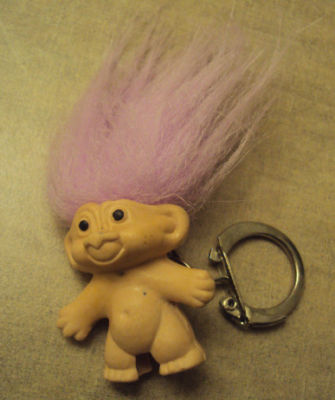 Title (ebay affiliate link): VINTAGE LAVENDAR HAIR KEYCHAIN/PENCIL TOPPER TROLL 1.5"