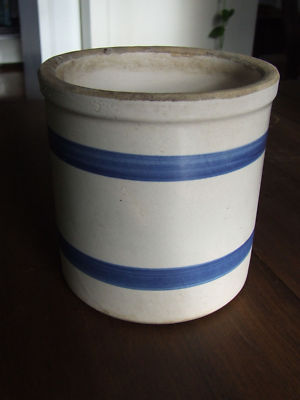 Old Blue Stripe Stoneware Salt Cellar Crock
