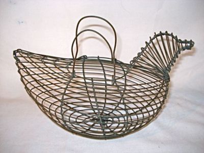 Antique Hand Made Wire Egg Basket Hen Chicken