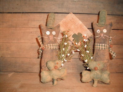 2 PRIMITIVE SAINT PATRICK CAT DOLLS*RILEY&BEN SHAMROCKS/SWEET ANNIE/PIPS