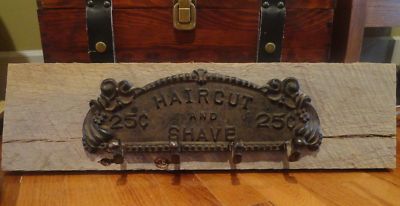 Title (ebay affiliate link): RUSTIC VINTAGE CAST IRON COAT TOWEL RACK ON WEATHERED CEDAR