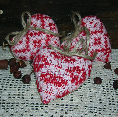 Title (ebay affiliate link): Primitive Folk Art VALENTINE Woven Red & White Coverlet Mini Hearts Set 3 Tucks