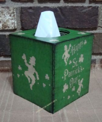 Title (ebay affiliate link): Primitive Boutique Tissue Cover HAPPY ST. PATRICK'S DAY Leprechaun Shamrock Hp