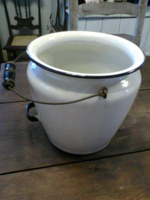 Large vintage white enamel slop pail
