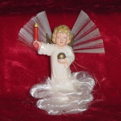 Old Vintage German Christmas Celluloid Spun Cotton Angel Ornament w Fiber Wings