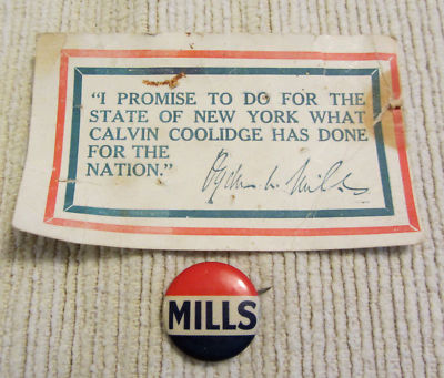 Title (ebay affiliate link): 1926 Ogden L. Mills Republican NY Governor Campaign Pinback Button & Card