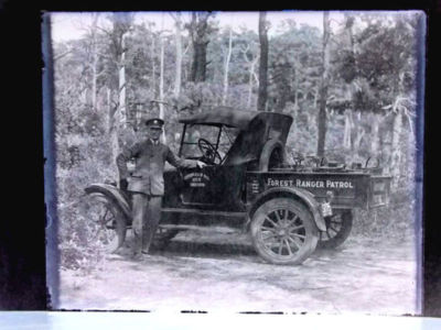 Vintage Photo Glass Negative Hull MA Model T Ford Runabout Truck Forest Ranger