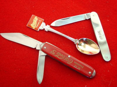 Vintage USA & Kutmaster Coke Coca Cola 2 Knife Set Plus Souvenier Spoon NR!!