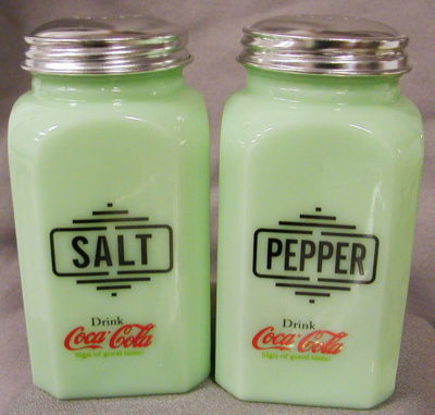 Title (ebay affiliate link): Jade Glass Salt & Pepper Shaker Set w/ Drink Coca Cola - Coke