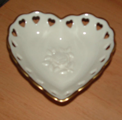 Title (ebay affiliate link): Lenox Porcelain Heart Shaped Dish Rose Center w/Open Hearts on Side!