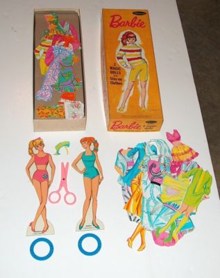 Title (ebay affiliate link): 1969 Whitman #4763 BARBIE Dolls 2 magic paper dolls w/ stay on clothes NICE!!