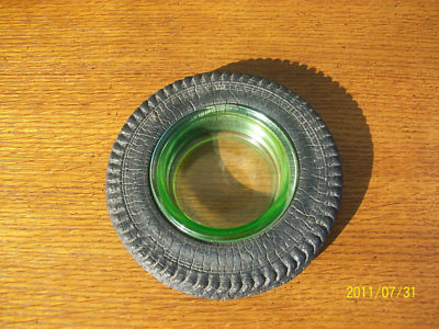 GREEN DEPRESSION GLASS "PA TIRE" ASHTRAY