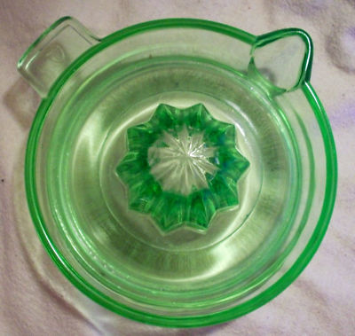 Title (ebay affiliate link): Federal Glass Company Green Vaseline/Uranium Depression Glass Reamer-Juicer