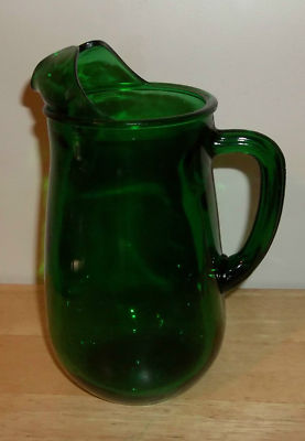 Title (ebay affiliate link): 8 1/2" Hunter Green Depression Glass Water Pitcher