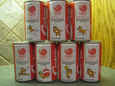 Title (ebay affiliate link): Coke cans, 1988 summer Olympics 6 can set from Spain Coca-Cola