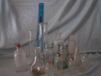 Title (ebay affiliate link): Vintage Glass Medicine Bottle Lot Round Clear Embossed Cork (H78)